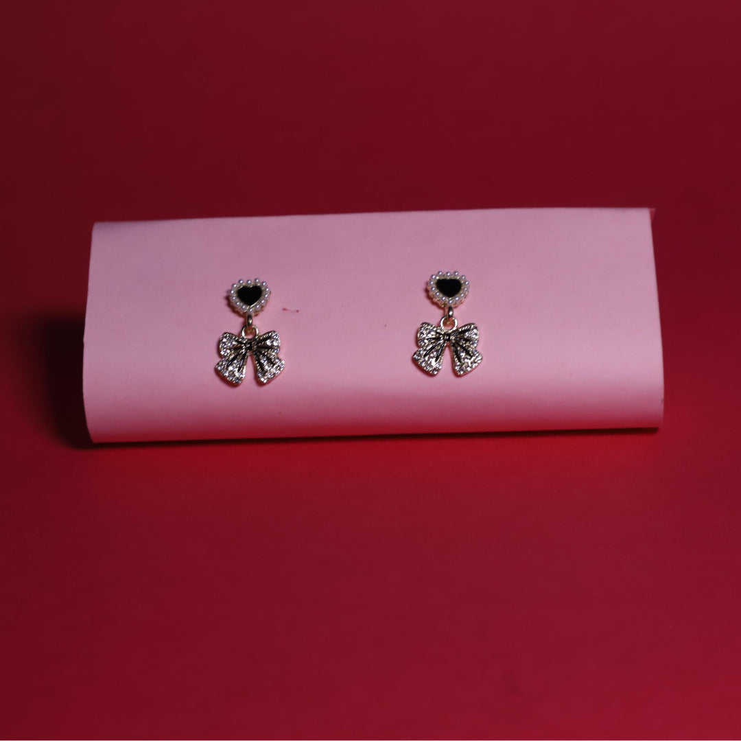 Add a chic and elegant touch to your look with the Rusty Black Heart Bow Drop Earrings. Featuring a glossy black heart stud paired with sparkling bow-shaped drops, these earrings perfectly blend playful charm with timeless sophistication. Lightweight, rust-free, and skin-friendly, they’re ideal for everyday wear or to elevate your outfit for parties and special occasions. A must-have accessory for those who love trendy yet classy jewellery.