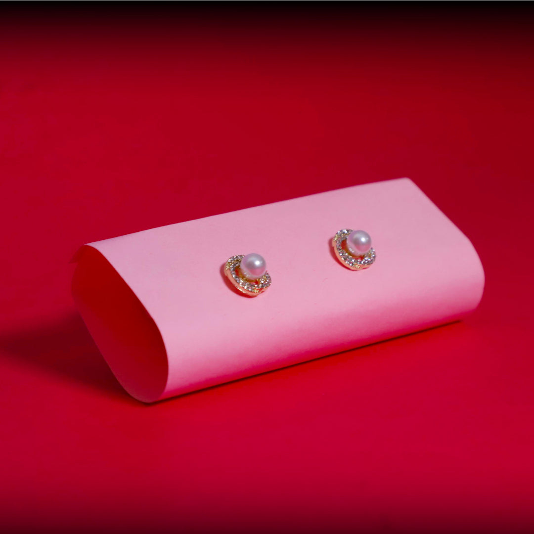 Rusty Classic Pearl Crystal Halo Stud Earrings