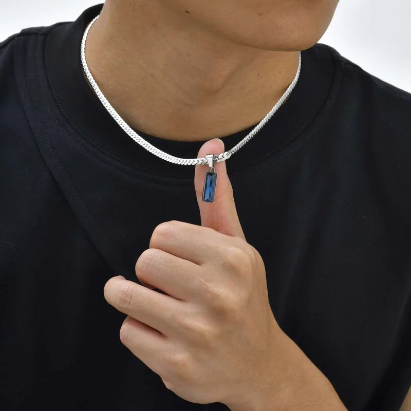 Rectangular: blue stone pendant for a modern look